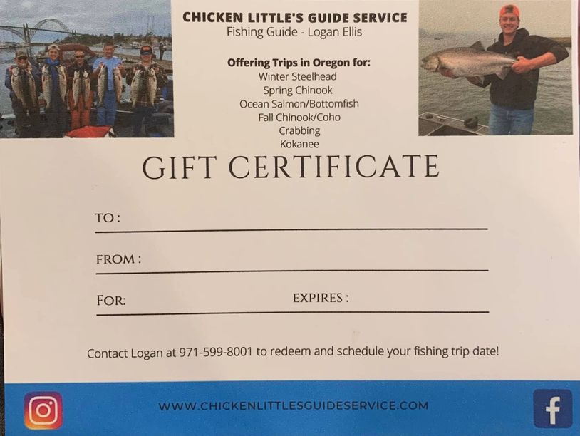 Owner and operator Logan Ellis is a United States Coast Guard and State of Oregon licensed and insured fishing guide. Offering guided fishing trips for winter steelhead (Dec-Apr), spring chinook (Apr-Jun), ocean salmon (Jun-Sept), fall chinook/coho (Aug-Nov), crabbing (year round), and Kokanee Trips at Detroit Lake (year round) operating under a forest service permit. Trips are local to Salem, Portland, Eugene and the coast of Oregon. Assured to have a great time on your fishing trip and the chance at catching high quality fish as well! I can accommodate groups from 1-6 people in my boats. if you have a group larger than 6, I will work with another local guide so we can have multiple boats to accommodate your groups size! Corporate account trips are welcome too. Payment methods can be cash, check or card through my square reader account.